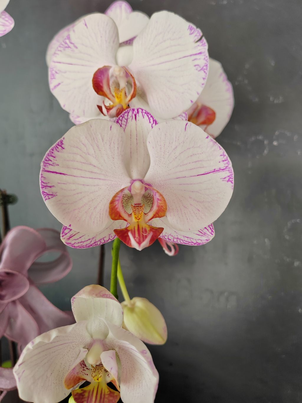Three Stem pastel white hybrid moth Orchid Gift Set.